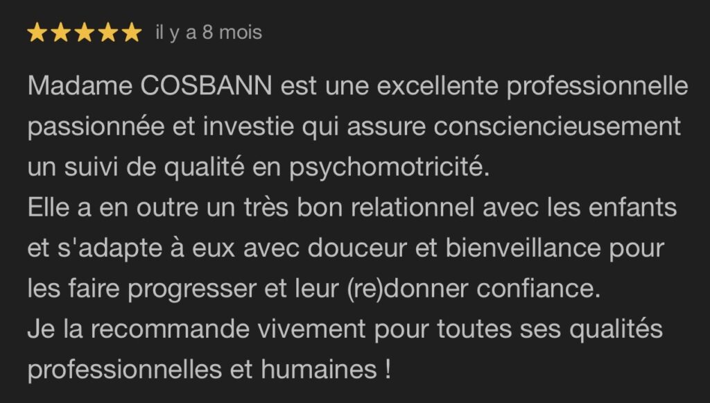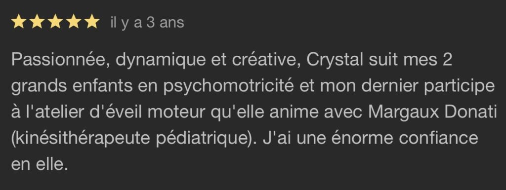 Je suis Crystal Cosbann, psychomotricienne diplômé d’état et passionnée, spécialisée dans l’accompagnement des bébés, des enfants et des adolescents. Mon cabinet offre un accompagnement adapté pour soutenir le développement global des enfants. Avec des valeurs de bienveillance et d’écoute, je m’engage à favoriser la confiance et la progression de chacun.